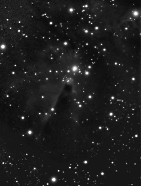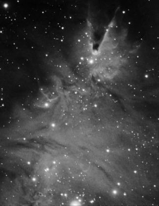 Der Konusnebel in NGC 2264 stand weit oben auf meiner Wunschliste der Ziele für Aufnahmen durch den H-alpha-Filter. NGC 2264 ist dabei die Bezeichnung für den Sternhaufen, von dem am oberen Bildrand einige Sterne zu sehen sind, und den ihn umgebenden Reflektionsnebel, der wegen seiner Form im Englischen auch Fox Fur Nebula genannt wird. Ich hatte ihn bereits vor einigen Jahren mit der Watec CCTV-Kamera abgelichtet. Datum: 13.12.10, 00:00h MEZ Optik: f=500 mm f/5,6 Nachführung: TVGuider mit Watec 120N an C5 f/10 Gesamtbelichtungszeit: 60 min (Einzelbilder: 600 Sekunden) Kamera: Atik 314L Filter: 6nm H-alpha von Astronomik