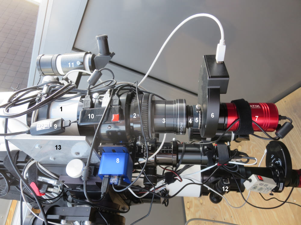 11 Sucherfernrohr, um bei einer Neukalibrierung des Gemini GoTo-Systems helle Sterne leichter in das Gesichtsfeld der Kamera zu bringen