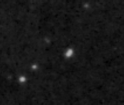 Ein paar Tage nach der Aufnahme mit dem IR-Passfilter hatte ich auch eine durch den Hα-Filter probiert. Das Ziel war eigentlich, die Herbig-Haro-Objekte östlich von Cep A sichtbar zu machen. Das gelang nicht. Die Bedingungen waren zu ungünstig, und ich habe die Aufnahme nach einer Stunde abgebrochen. Dennoch ist der helle Planetarische Nebel PM 1-339 deutlich sichtbar, und die beiden Nebelteile erscheinen getrennt (siehe die Ausschnittsvergrößerung links). Datum: 03.09.22, 00:30h MESZ Optik: f=750mm f/5,4 Nachführung: TVGuider mit Watec 120N an 90mm f/5,6 Gesamtbelichtungszeit: 60 min (Einzelbilder: 240 Sekunden) Kamera: Atik 460EX Filter: 6 nm Hα von Astronomik