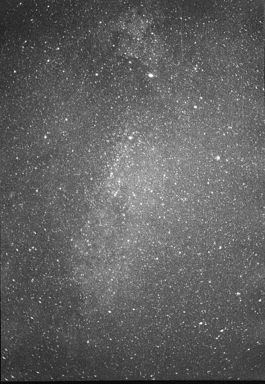 Schwan Die Sternwolken in der Milchstaße treten deutlich hervor. Der Nordamerikanebel, eine HII-Region, ist nicht als solcher sichtbar. Datum: Oktober 1995 Objektiv: f=50 mm, f/1,7 Belichtungszeit: 25 sec Film: Kodak T-Max 3200 |