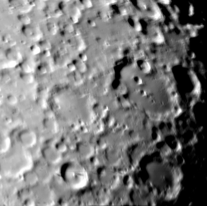Das nebenstehende Mond zeigt den Krater Clavius rechts oberhalb der Mitte. Es ist ein Komposit aus zwei Einzelbildern, die mit der Mintron MTV-12V1C am C9.25 bei 2350 mm Brennweite gemacht wurden.