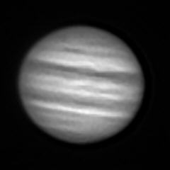 An diesem Abend leuchteten die hellen Planeten Venus, Jupiter und Mars sowie dei hellsten Sterne vom wolkenfreien Himmel, aber der Hintergrund war sehr hell, obwohl der Mond noch nicht aufgegangen war. Es gab zähen Hochnebel, der sinnvolle Deep Sky Aufnahmen nicht zuließ. Deshalb entschloss ich mich, Jupiter und Mars zu versuchen. Ohne den Roten Fleck gibt der Jupiter bei der geringen Auflösung meiner Kamera nicht viel her, aber umbauen wollte ich nicht. Der Aufwand war mir zu hoch. Datum: 19.01.25, 20:09h-20:25h MEZ Optik: f=750 mm f/5,4 Nachführung: keine Kamera: Atik 490EX Belichtung: 1250 x 100 ms Verwendungsrate: 10% Filter: 12 nm [OIII] von Astronomik