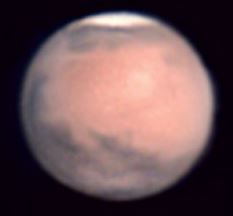 Ein paar Tage später postete Bernd Gährken diese Aufnahme vom Mars, die ich zum besseren Vergleich auf 25% der Originalgröße verkleinert darstelle. |