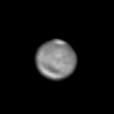 An diesem Abend leuchteten die hellen Planeten Venus, Jupiter und Mars sowie dei hellsten Sterne vom wolkenfreien Himmel, aber der Hintergrund war sehr hell, obwohl der Mond noch nicht aufgegangen war. Es gab zähen Hochnebel, der sinnvolle Deep Sky Aufnahmen nicht zuließ. Deshalb entschloss ich mich, Jupiter und Mars zu versuchen. Der Mars ist noch einmal erheblich kleiner als Jupiter und misst nur 14,6" im Durchmesser. Bei der geringen Auflösung meiner Kamera waren da nicht viele Details zu erwarten, aber umbauen wollte ich nicht. Der Aufwand war mir zu hoch. Dennoch sind die Polkappe oben und ein dunkles Gebiet links unten sichtbar. Auch der dunkle Streifen unterhalb der Polkappe, der helle Streifen am Pol unten und der leicht hellere Fleck etwas oberhalb der Mitte sind real. Datum: 19.01.25, 20:33h-20:45h MEZ Optik: f=750 mm f/5,4 Nachführung: keine Kamera: Atik 490EX Belichtung: 1043 x 50 ms Verwendungsrate: 10% Filter: 12 nm [OIII] von Astronomik