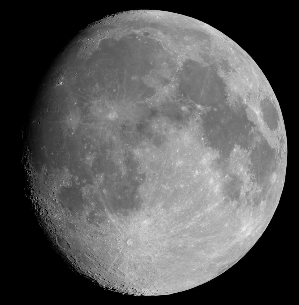 Der Mond stand am 24.02.2021 hoch am Himmel, so dass ich mich entschloss, ihm eine Aufnahmeserie zu gönnen. Die Phase war 3 Tage vor Vollmond. Und das Schrötertal, von einem kleinen Krater nördlich der beiden Krater Herodot und Aristarchus ausgehend, war bestens zu sehen. Datum: 24.02.21, 22:39h MEZ Optik: f=750 mm f/5,4 Nachführung: keine Gesamtbelichtungszeit: 6 Sekunden (Einzelbilder: 0,01 Sekunden) Kamera: Atik 460EX Filter: 12 nm [OIII] von Astronomik