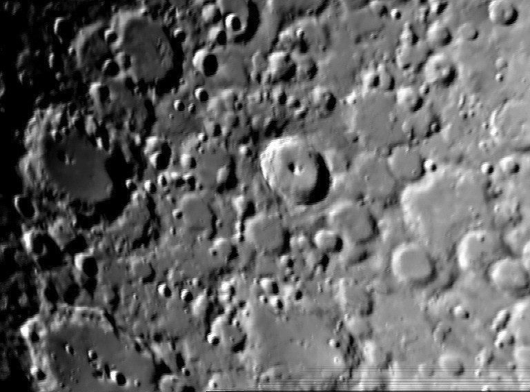 Das obenstehende Bild zeigt den Krater Tycho und seine Umgebung. Es wurde mit der Mintron MTV-12V1C am C9.25 bei 2350 mm Brennweite gemacht.