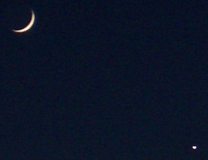 Datum: 21.05.04, 22:30h MESZ Optik: f=17,4 mm, f/2,8, Digitalkamera 3x Zoom Nachführung: keine, vom Stativ Belichtungszeit: 1/8 Sekunde Film: Digitalkamera Pentax Optio S, 3,2 Megapixel, Empfindlichkeitseinstellung 200 ASA Ausschnittsvergrößerung, zweifach vergrößert |