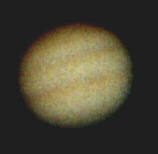 Eigentlich wollte ich Jupiter mit seinen Wolkenstrukturen ablichten. Aber die Belichtungszeit war wohl etwas zu lang für die Brennweite. Dafür habe ich nun Jupiter und seine 4 Galileischen Monde auf dem Foto. Auch ganz nett! Datum: 17.10.99, 21.00h MEZ Optik: f=2350 mm f/10 plus 26 mm Okular und Teleextender Nachführung: ohne Korrekturen Belichtungszeit: etwa 2 Sekunden Film: Kodak Royal Gold 400 Die nebenstehende Aufnahme habe ich zu Beginn des Abends gemacht, als der Mond noch am Himmel stand.