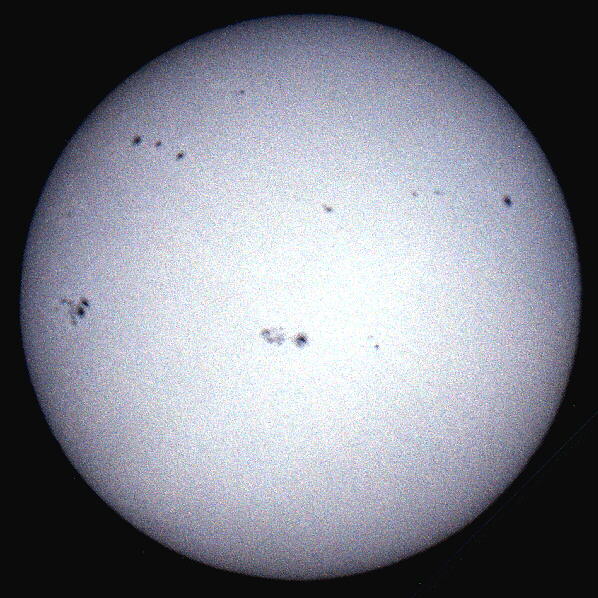 Optik: C9 f/10, f=2350 mm Das Bild wurde fokal durch das Teleskop und eine ND 5-Sonnenfilterfolie fotografiert.