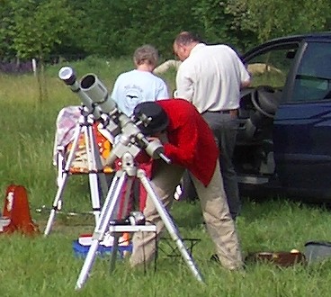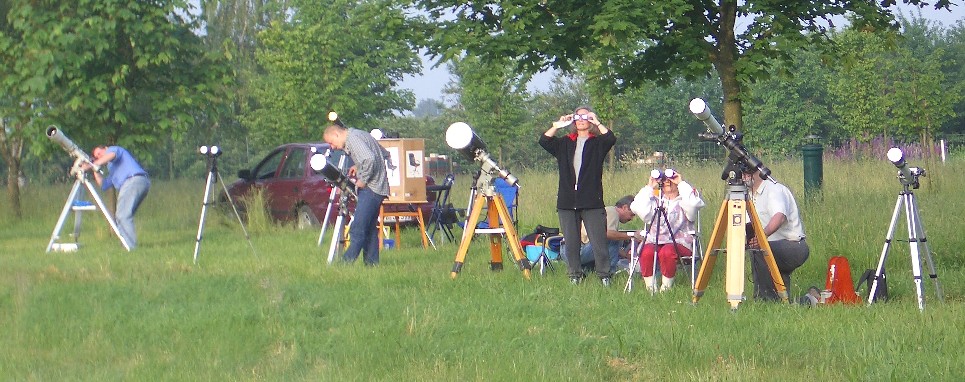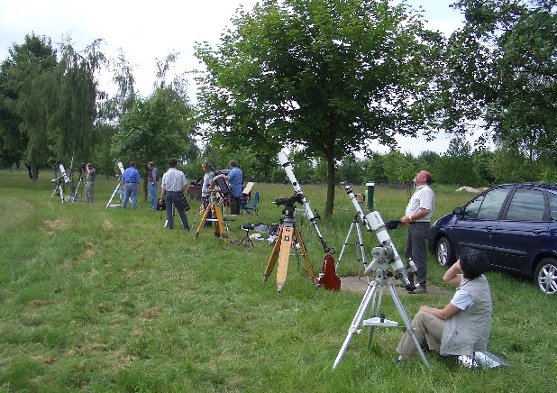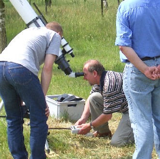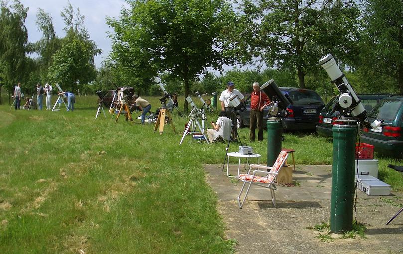 Große astronomische Ereignisse sind immer wieder Anlaß, um diese gemeinsam auf unserem Beobachtungsplatz zu genießen. So auch geschehen beim Venus-Transit am 08.06.2004 trotz durchziehender Wolkenfelder. Die meisten Wolken zogen zum Glück im Norden durch. |
