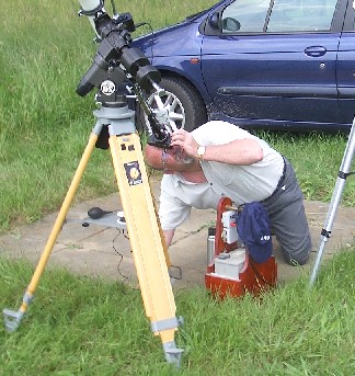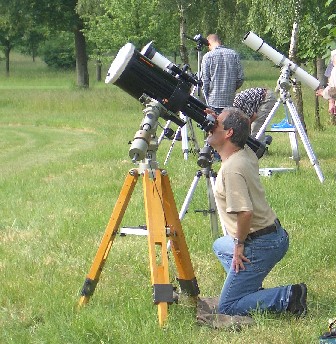 Der engagierte Astronom ist auch zu mehr oder weniger sportlichen Verrenkungen fähig, wenn er ein bestimmtes Objekt aufs Korn genommen hat. |