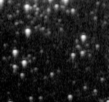 Die Mintron- und Watec-Videokameras geben ein analoges Videosignal aus, das zur Weiterverarbeitung im Computer digitalisiert werden muß. Dazu dienen Framegrabber, die es als Einsteckkarten für den PCI-Bus oder als externe Geräte mit USB- oder Firewire-Anschluß gibt. Ich habe zunächst jahrelang einen Framegrabber für den PCI-Bus von Hauppauge verwendet. Über ein 20 Meter langes Videokabel gelangten die Bilder von der Kamera auf der Terrasse in mein Arbeitszimmer zum Framegrabber im PC. So bequem es auch war, so unangenehm waren die Artefakte, die dieser Framegrabber produzierte, wenn man gut fokussiert hatte. Durch die starken Hell-Dunkel-Übergänge bei den Sternen kam es zu einem Überschwingen in Ausleserichtung. Das war nicht nur im Bild (Beispiel siehe unten) an Sternen, sondern auch an Hot Pixeln des Dunkelfeldbilds als "Schwanz" verschieden heller, grauer Pixel zu erkennen. |